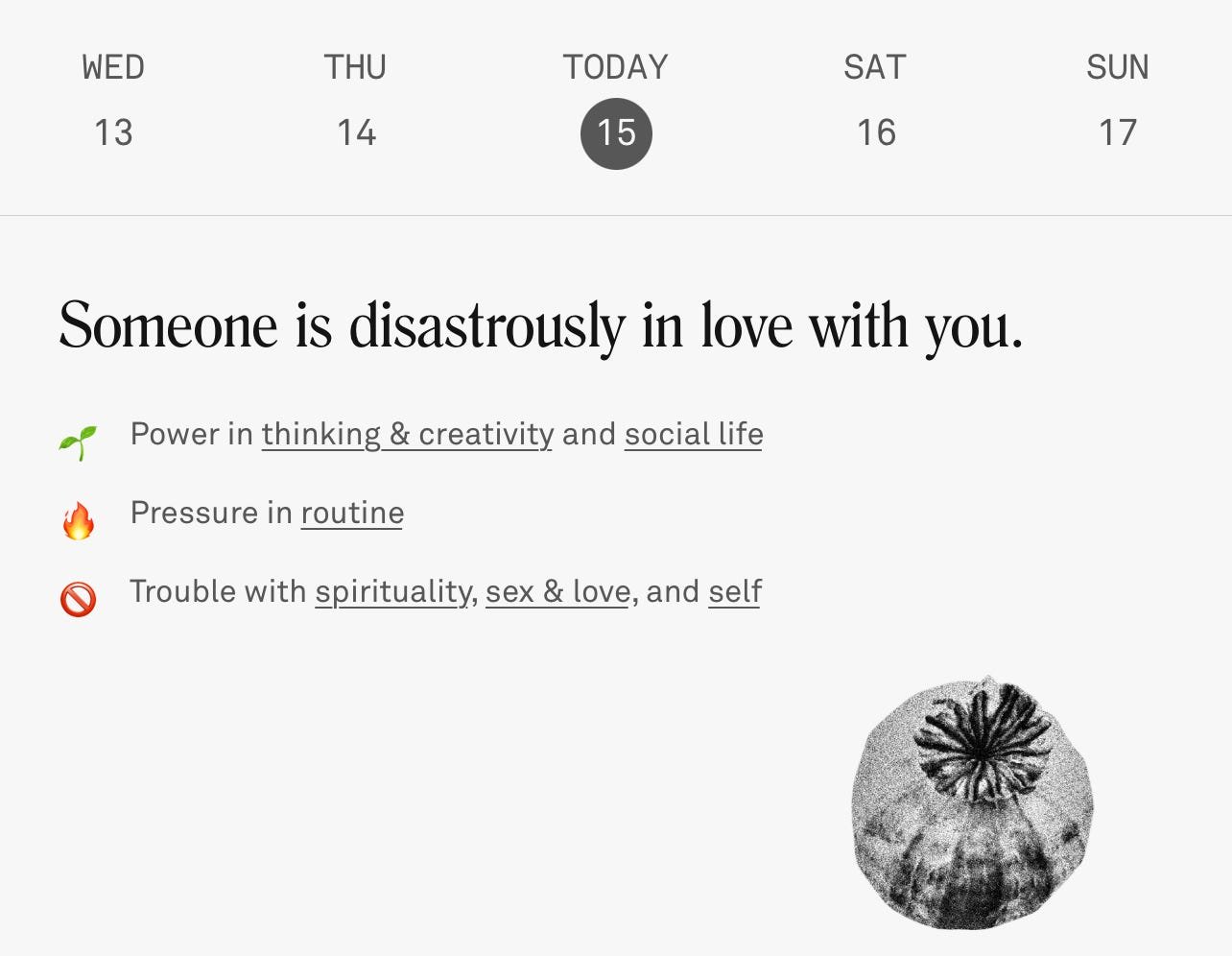 so i take advice and guidance from the bible and the universe, and i connect all the signs they give me to the right path. someone is disastrously in love with me and maybe that person is me, or it’s a sign about the boy i met in august, or maybe i don’t know yet who because i’m not meant to know. only God knows.
