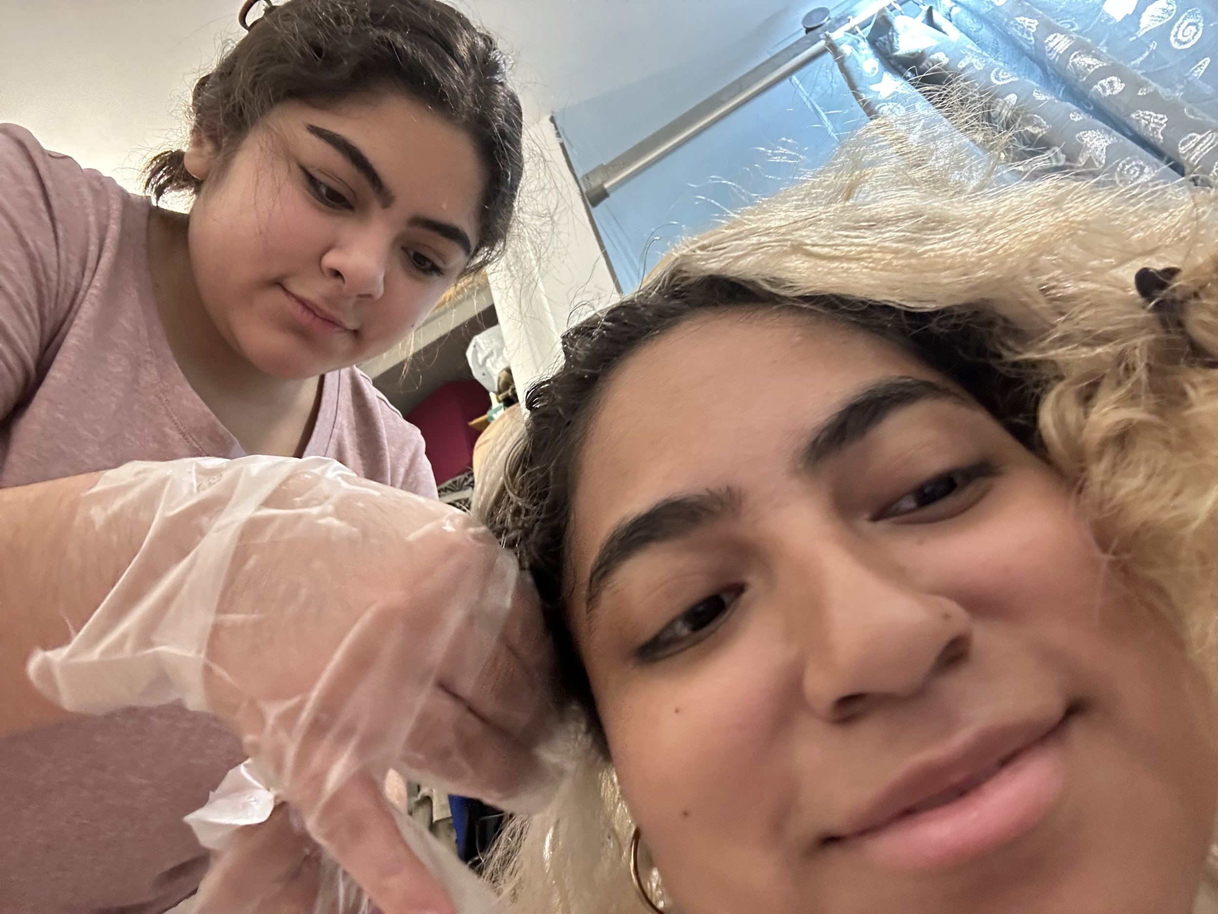 the second round of bleach done at nearly midnight was a journey. my assistant, my younger cousin who i forced to help me, was exhausted by the end and i’m sure wanted to disown me. here lies my hairdresser taking a brief nap while i rinsed the bleach out and let the toner, a blue tinted conditioner that came with the box dye, sit in my hair. it was 1 am at this point on a sunday. i had work early the next morning and she was going to church. whatever christmas gift i get her will not make up for her willingness to help me with literally any task i set out to accomplish. from clothing minimalism, to box dying my hair brown, and now to bleaching my roots she is one of my greatest confidant and ally.